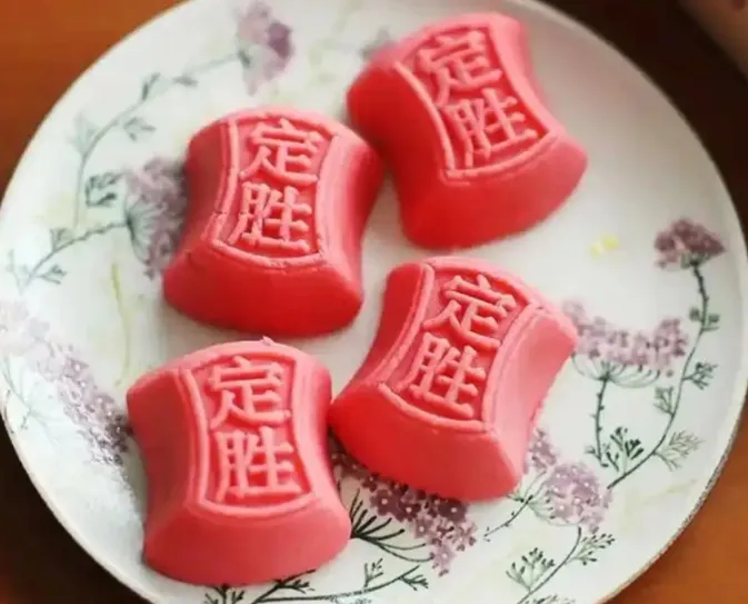 在江南的晨雾中,青石巷里的糕点铺总飘着若有若无的米香。老匠人手持木模,将掺了红曲粉的粳米糯米粉填入形似元宝的凹槽,再填入绵密的豆沙馅,最后以竹片刮平表面,放入蒸笼。二十分钟后,热气氤氲中,一块块色泽淡红、松软香糯的定胜糕便诞生了。这枚承载着“必定胜利”吉祥寓意的传统糕点,不仅是江浙地区的美食代表,更是中华饮食文化中极具生命力的活态遗产。从南宋战场到现代茶桌,从科举考场到非遗名录,定胜糕以独特的形态与味道,书写着跨越千年的文化传奇。