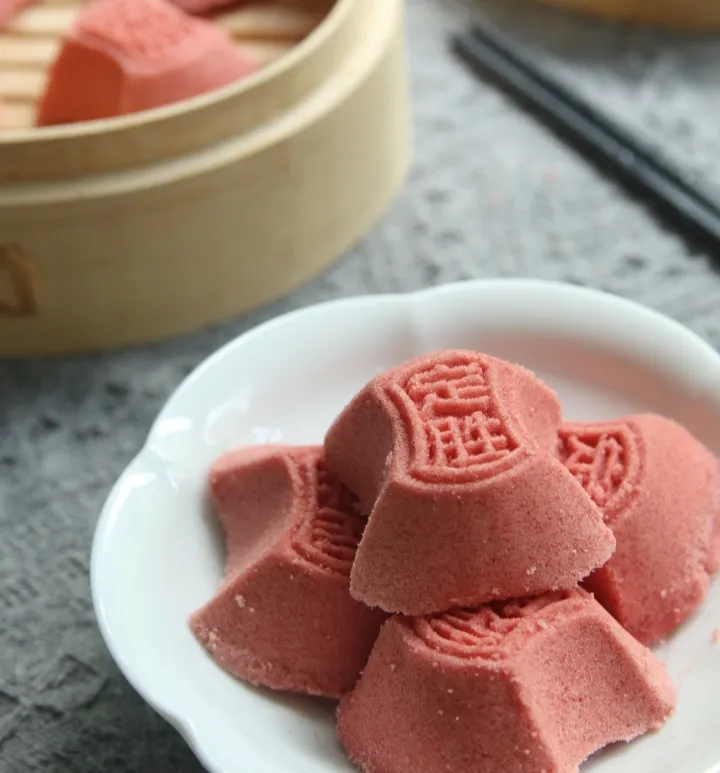 4. 蒸制:旺火沸水蒸15-20分钟,糕体膨胀至模具九分满即可出锅。现代工艺改进中,部分作坊采用蒸汽发生器,使温度精准控制在100℃,避免局部过热导致塌陷。
