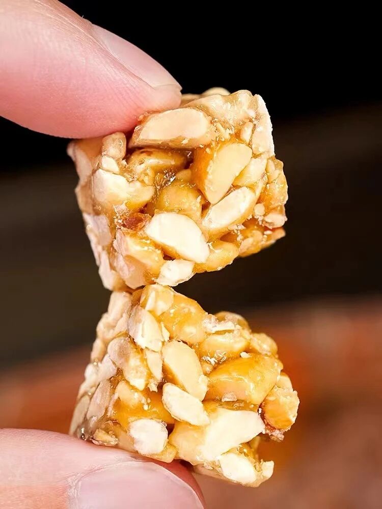 谁能拒绝满是花生的花生糖,一口咬下去酥脆清香,花生味浓郁,看起来就好好吃。