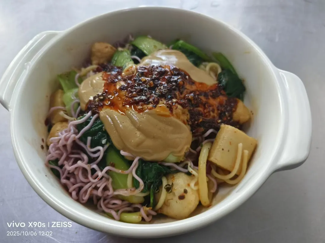 黏糊麻辣烫是原有麻辣汤升级款,以“黏糊醇厚”的汤底为核心特色,融合了麻酱的浓香、食材的丰富与汤底的鲜辣,成为一代又一代东北人记忆中的家乡味道。其灵魂在于“黏糊”的口感,裹满食材的每一处缝隙,里面的配菜丰富多样,蔬菜水灵灵的,各类丸子也很实在。面条吸满汤汁,嗦起来太带劲。再加上灵魂辣椒,香而不辣,直接把味道升华。每一口都能感受到汤汁与食材的深度融合。