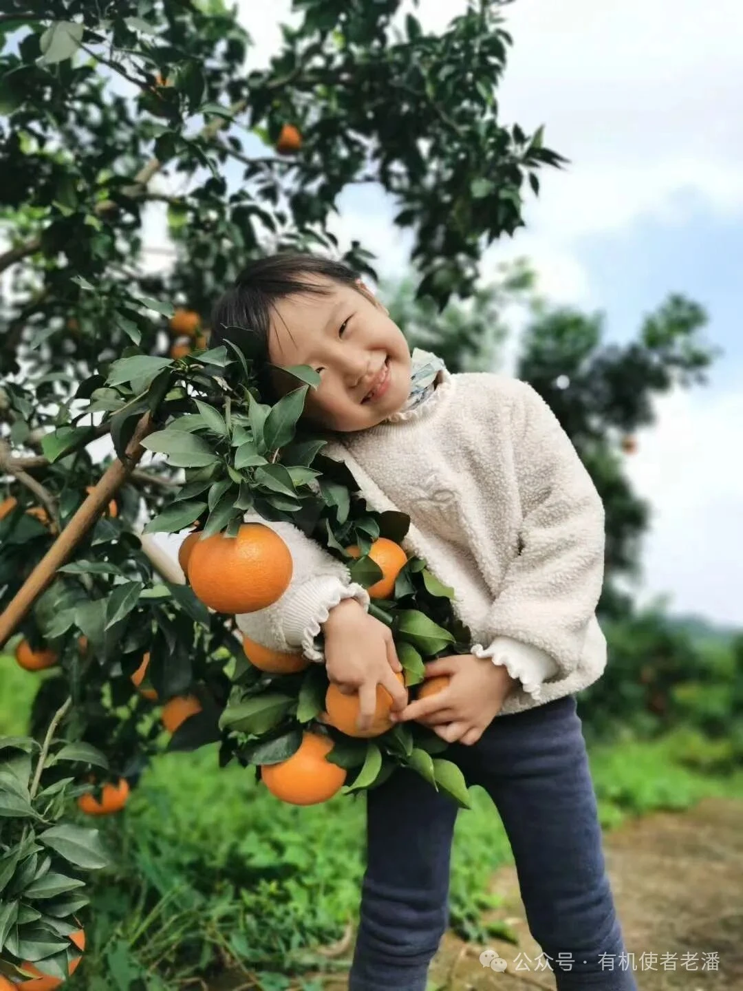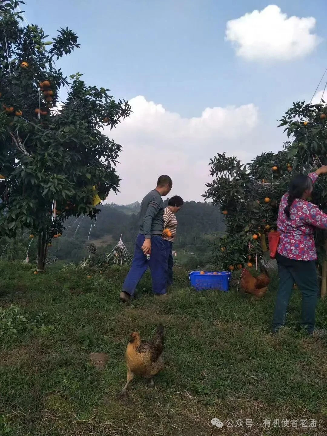 果园里鸟鸣不断,各种小昆虫飞来跳去的,草长得太旺太密,园主又养了猪养了羊养了鸡,把园子里的草打了养羊喂猪,所以他们的猪羊鸡虽然没有认证,但都是长年只吃园子里的草长的。这里的果冻橙因为口感好产量低,加上近几年的天灾,所以这个园子里的果每年下来都是几个老客户一分就没有了,今年量稍微大点可卖一部分,手快有手慢就吃不到了。