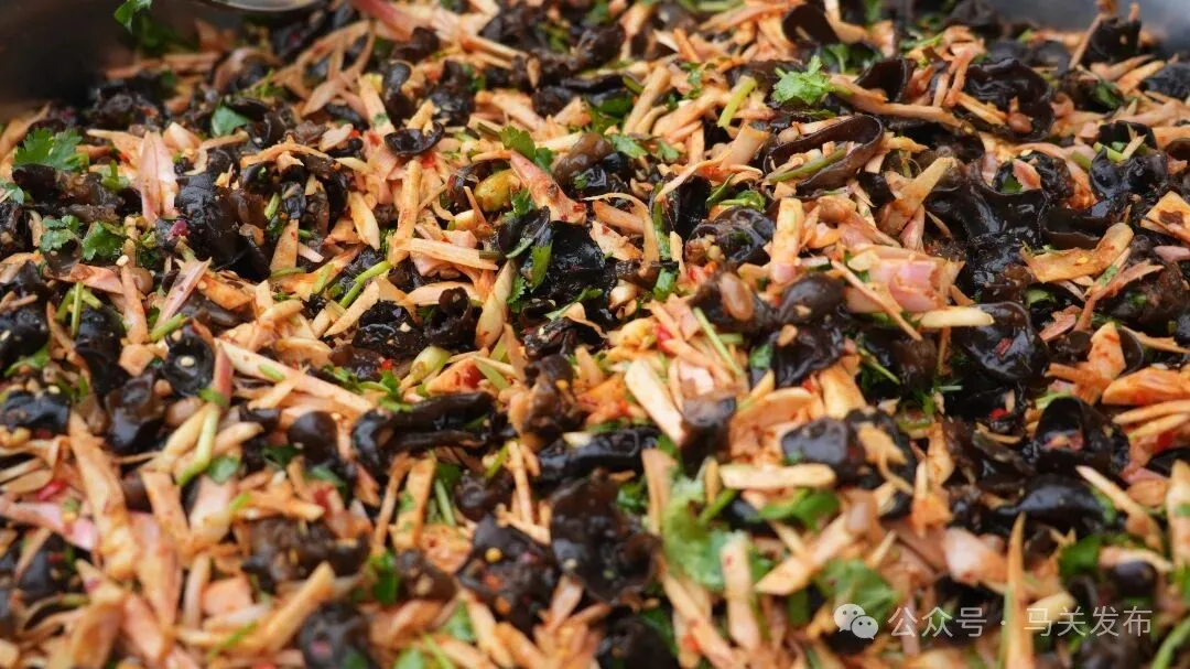 “草果芽是自家地里的,木耳是上山捡的,全是纯天然的好食材。在我们古林箐,家家户户春天都爱吃这一口,清爽又解馋,这就是我们马关的春味。”村民李大姐的话语,道出了这道家常菜在当地百姓心中的分量。这道看似朴素的凉拌菜,不仅是马关百姓代代相传的生活智慧,更是刻在骨子里的乡愁记忆。