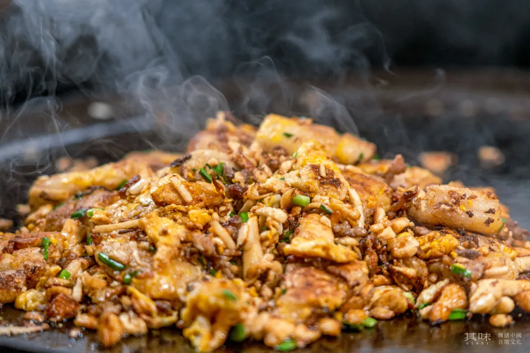 当它与年糕一同下锅翻炒,那浓郁醇厚的鲜味迅速与年糕的香甜相互交融。