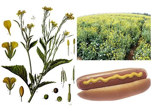 黄芥末(Mustard),和日式绿芥末不同,味道酸辣且较为温和,用于去腥提味,也可用原粒来腌菜或放入沸水中煲煮蔬菜,还可用于调制香肠、火腿、沙拉酱、糕饼等,宜家热狗配的两种酱,一种是番茄酱,另一种黄黄的就是芥末酱。