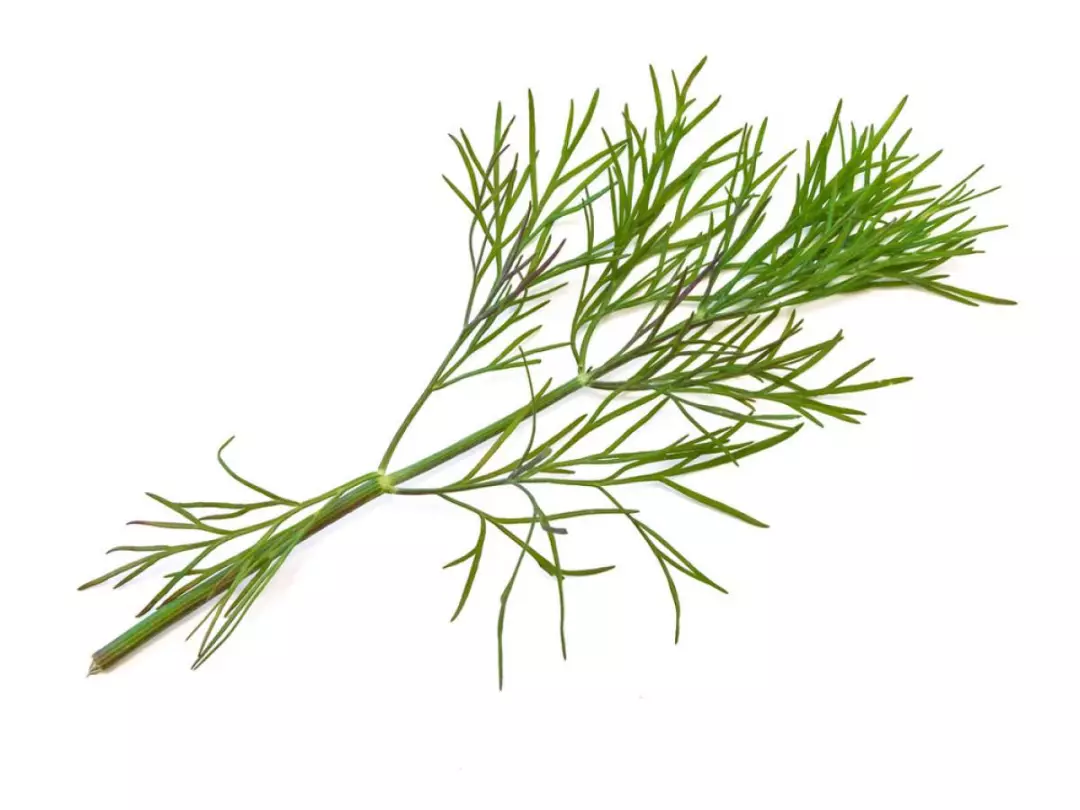 莳萝(Dill),长得像茴香但味道不同,略带辛辣味,可以鲜食也可以干制成香料,打碎可用于制作酱料,也可以撒在鱼类冷盘上(烟熏三文鱼上常见)去腥添香做装饰,也可加入泡菜和汤品中。