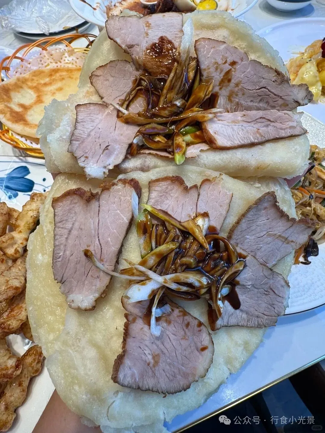 地道吃法是夹肉:熏肉切薄片,配葱丝和秘制甜酱塞进热饼里,饼香、肉香、酱香、葱香混在一起,绝了!老沈阳人还爱配碗小米粥解腻养胃,吃得超舒坦。