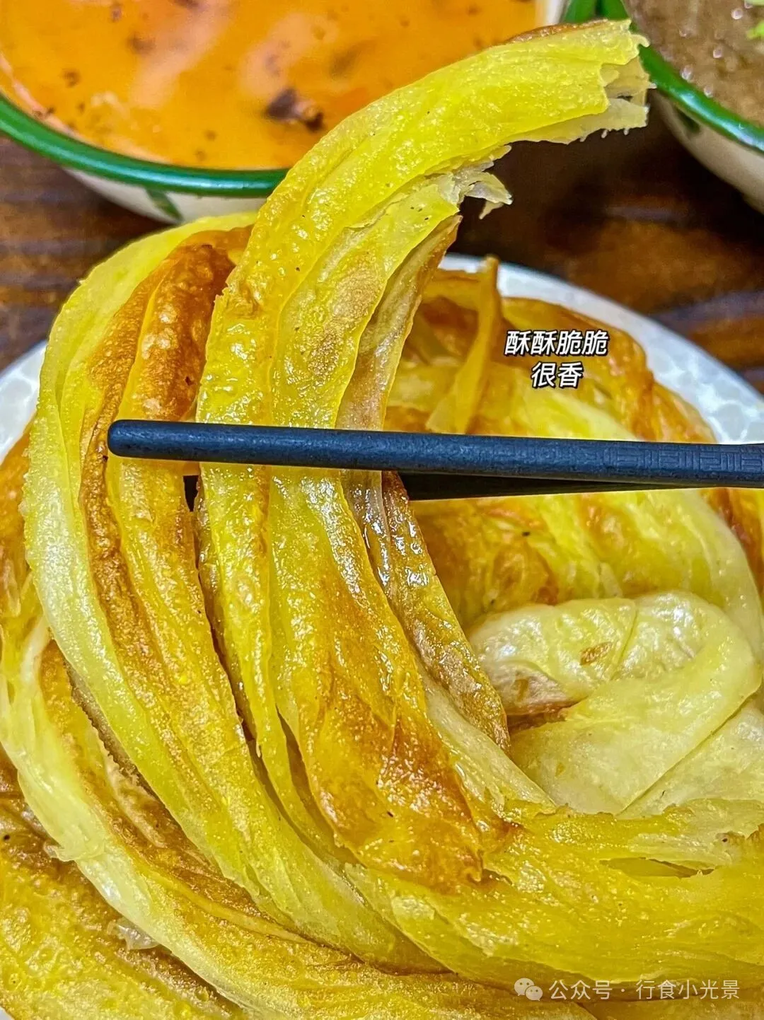 吊炉饼做法讲究:面团反复揉搓醒发,师傅甩胳膊扔进吊炉烤,出炉后金黄油亮、层次分明,拿在手里“咔嚓”掉渣,外酥里嫩,空口吃都香。