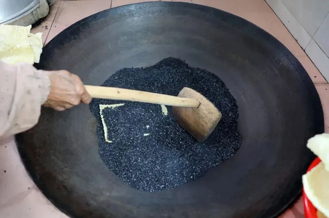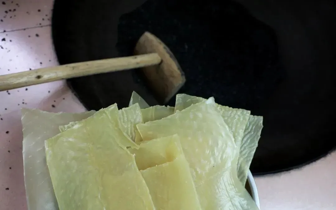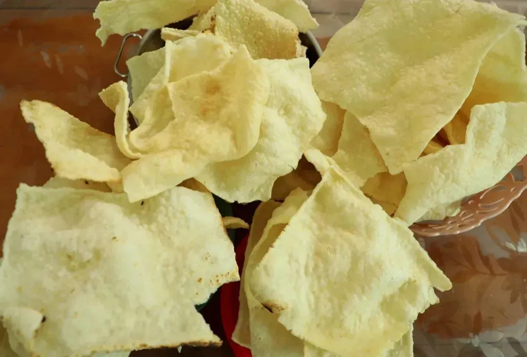 客家地区一直以来都有把米浆蒸制成“米皮”食用的习俗。为了便于储存,客家人把“米皮”经由沙子炒或油炸至膨化后食用、保存。正因为沙炒粄皮或油炸粄皮没有任何添加剂,且滋味纯正香脆、入口即化,所以一直以来都深受客家人的青睐,更升级成为逢年过节餐桌上一道特色小吃。