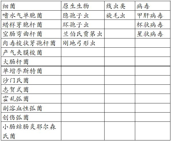 表1即食食品致病性微生生物