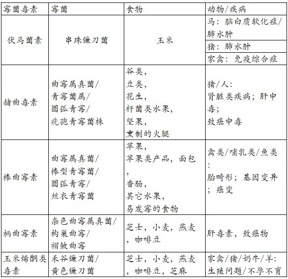 表2霉菌毒素引发的疾病