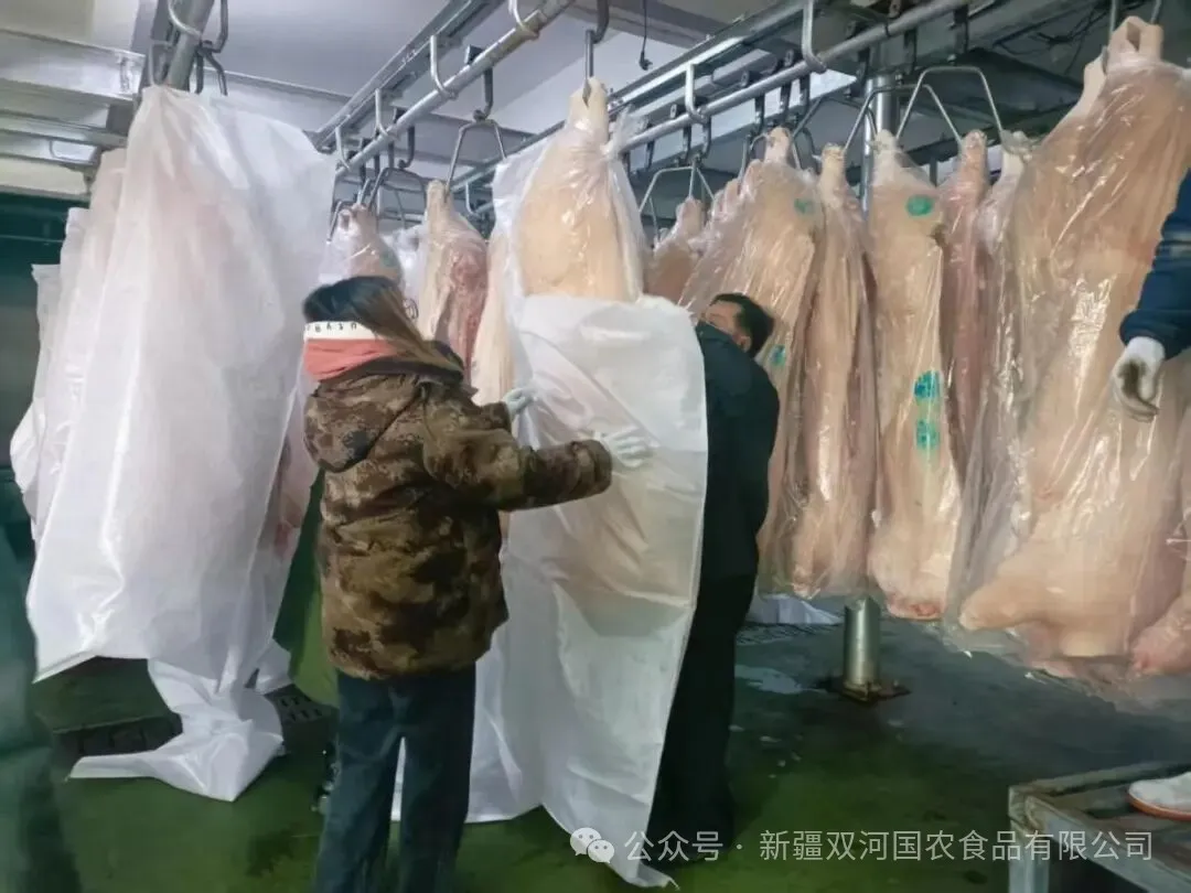 流水线匀速运转,工人们娴熟地完成分装、贴标、装袋工序;为白条套上食品级防尘保鲜袋,贴上印有生产日期与检疫编号的标签,再按规格装入专属编织袋。每袋均附有检疫合格证明,清晰标注检验批次与结论,确保产品完全符合甘肃客户食材安全标准需求后装车启运。