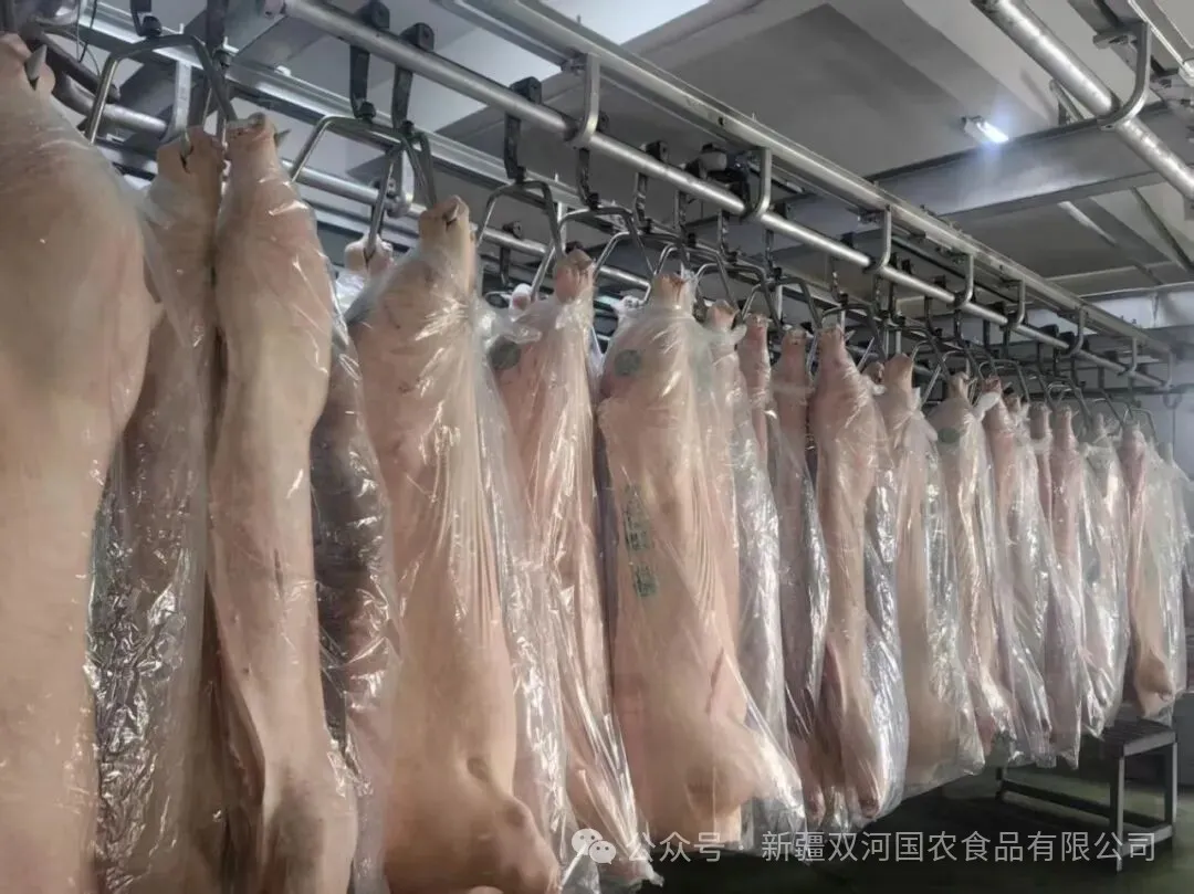 近日,国农食品厂区机器轰鸣不息、人影穿梭不息,公司订单量较以往同期实现显著增长,近日新增甘肃客户订购生猪白条,工人们加班加点打包收尾,即将乘冷链专车启运。