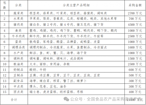 项目名称:沈阳国字菜篮子农业发展有限公司食材原料采购项目