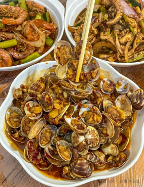 夜市的炒花蛤最是勾魂。花甲吐尽沙粒,于锅中与辣椒、蒜片翩然共舞,那汤汁鲜美至极,用来泡饭堪称一绝。挑出肉来吸溜进嘴,鲜辣在舌尖炸开,再灌口冰可乐,那叫一个舒坦。