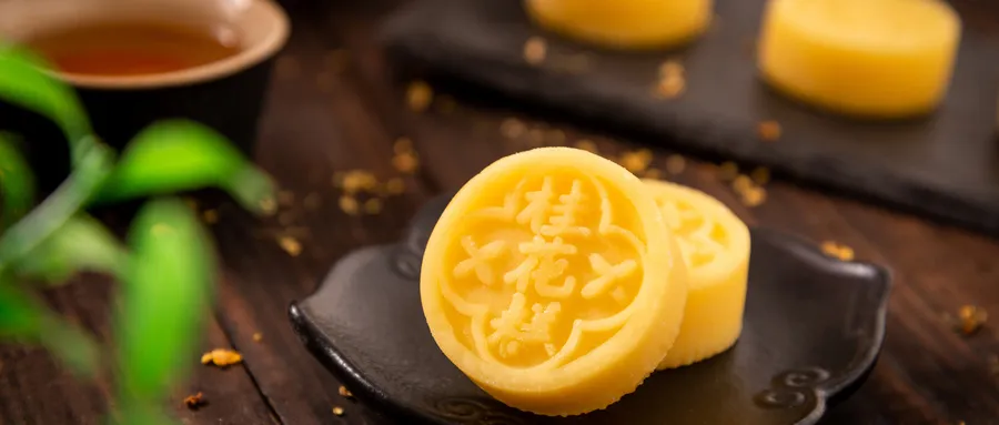 桂林是中国五大桂花产区之一,是全国最大的干桂花产品传统集散地,桂林桂花糕是广西桂林的传统糕点,以当地特产桂花为灵魂,口感清香软糯。主要用糯米粉、白糖和鲜桂花制成,部分配方会加入芝麻或豆沙增添层次。制作时需将桂花糖渍后融入米浆,蒸制后切块,成品呈淡黄色,点缀着金色桂花瓣,兼具花香与米香。其甜度适中,入口绵密,带有独特的桂花芬芳,被誉为“可以吃的桂花”。