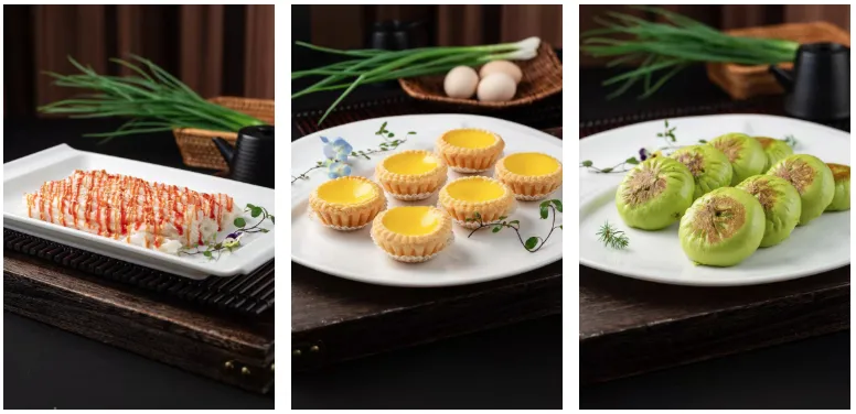 混酱捞竹窝粉、姜汁雪燕豆腐花、金牌蛋挞皇、菜汁牛肉煎包......小巧精致、种类繁多的各色茶点,相信能折服每一个大湾区食客挑剔的味蕾。
