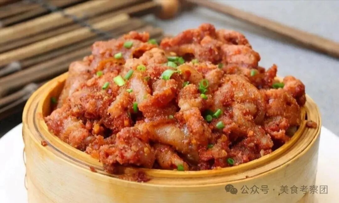 安庆人做粉蒸肉和其它各地的做法略有不同,他们会刻意地在米粉和五花肉这对佳偶中锦上添花,加入色彩和风味都极佳的时令菜——蓬蒿,于是粉蒸肉就多了一层更为丰富的口感。