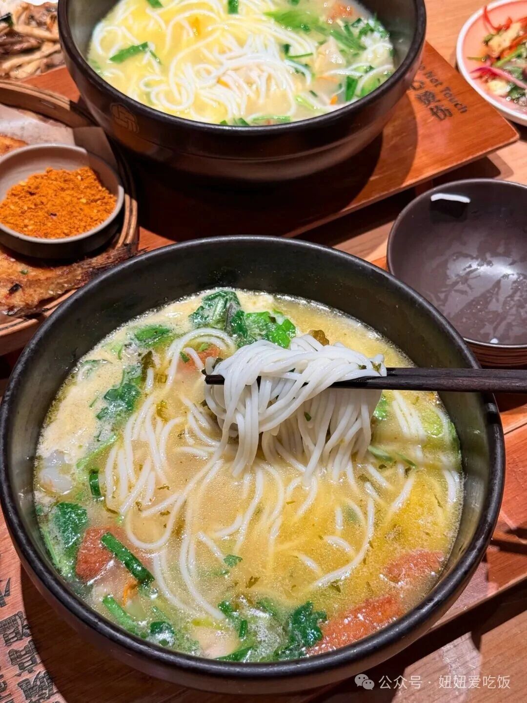 这是白族的传统菜。用的是洱海的活鱼,配上本地特色的酸木瓜、辣椒、花椒一起煮。酸木瓜的酸味很自然,吃起来酸中带辣,特别开胃。鱼肉鲜嫩,汤都可以泡饭吃。
