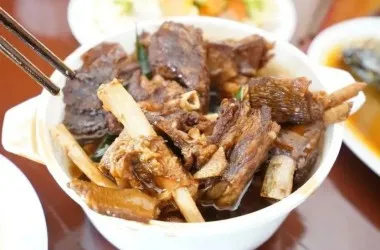 这道桂花鳖烧羊,羊排鲜美,甲鱼嫩滑,桂花酒的香气完全钻进了羊排和甲鱼中,化作了一口又一口回味无穷的醇美。