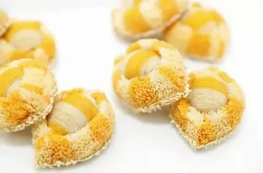 除此之外,鲍鱼酥的重点亦在于一个“酥”字,萧山特色鲍鱼酥,在酥皮的制作上,看中面粉的选择与炸制时油温的把控,出炉半小时仍可保持鲍鱼酥面皮的酥脆感,若即食风味更佳。