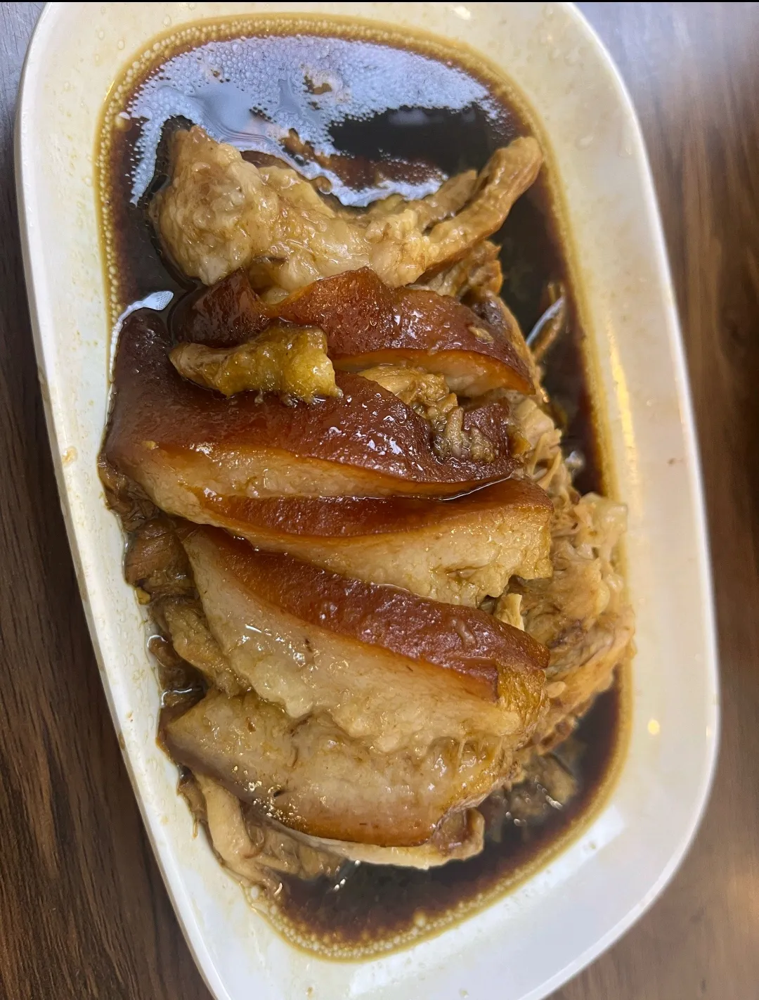 这家专营潮汕汤面的小店,是许多追求清淡本味食客的安心选择。一碗正宗的潮汕汤粉,精髓在于“清而不淡,鲜而不俗”。再搭配焯烫得恰到好处的肉片、肉丸或海鲜,随着汤粉一口下去,当真是美味!不少熟客还会来上一份猪脚饭,炖得酥烂的猪脚胶质丰富,咸鲜的卤汁浸润米饭,再搭配店家自制的辣椒酱,简单却直抵人心。