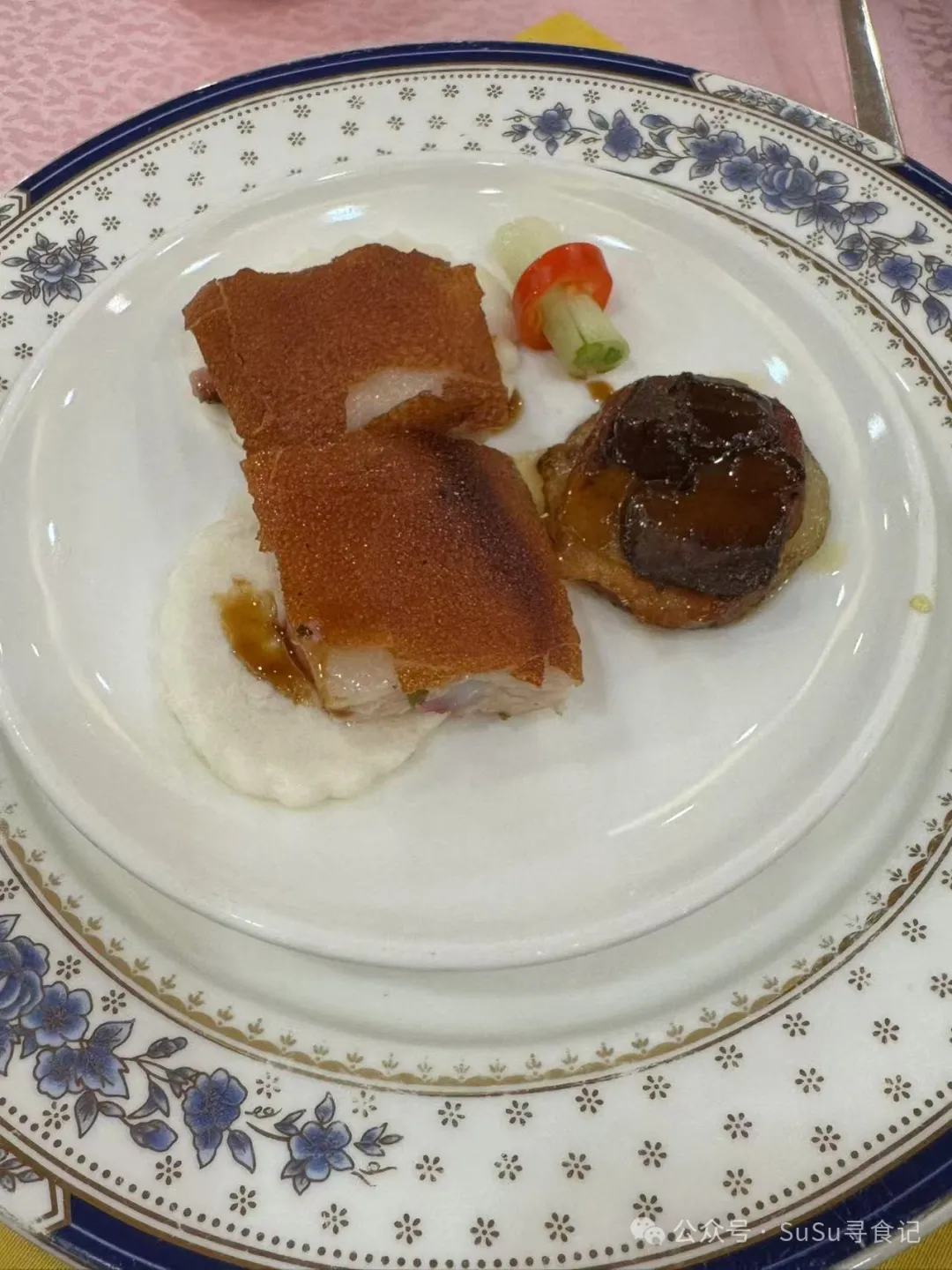 乳猪件伴金钱鸡的仪式感令人难忘:整只脆皮烤乳猪金光璀璨,分盘后皮脆肉嫩,皮下脂肪在舌尖化作轻盈的甘润,毫无油腻之扰。猪润烧麦则以一片厚实的蒸猪肝惊艳登场,火候精准得让内脏爱好者与初尝者皆欲罢不能。