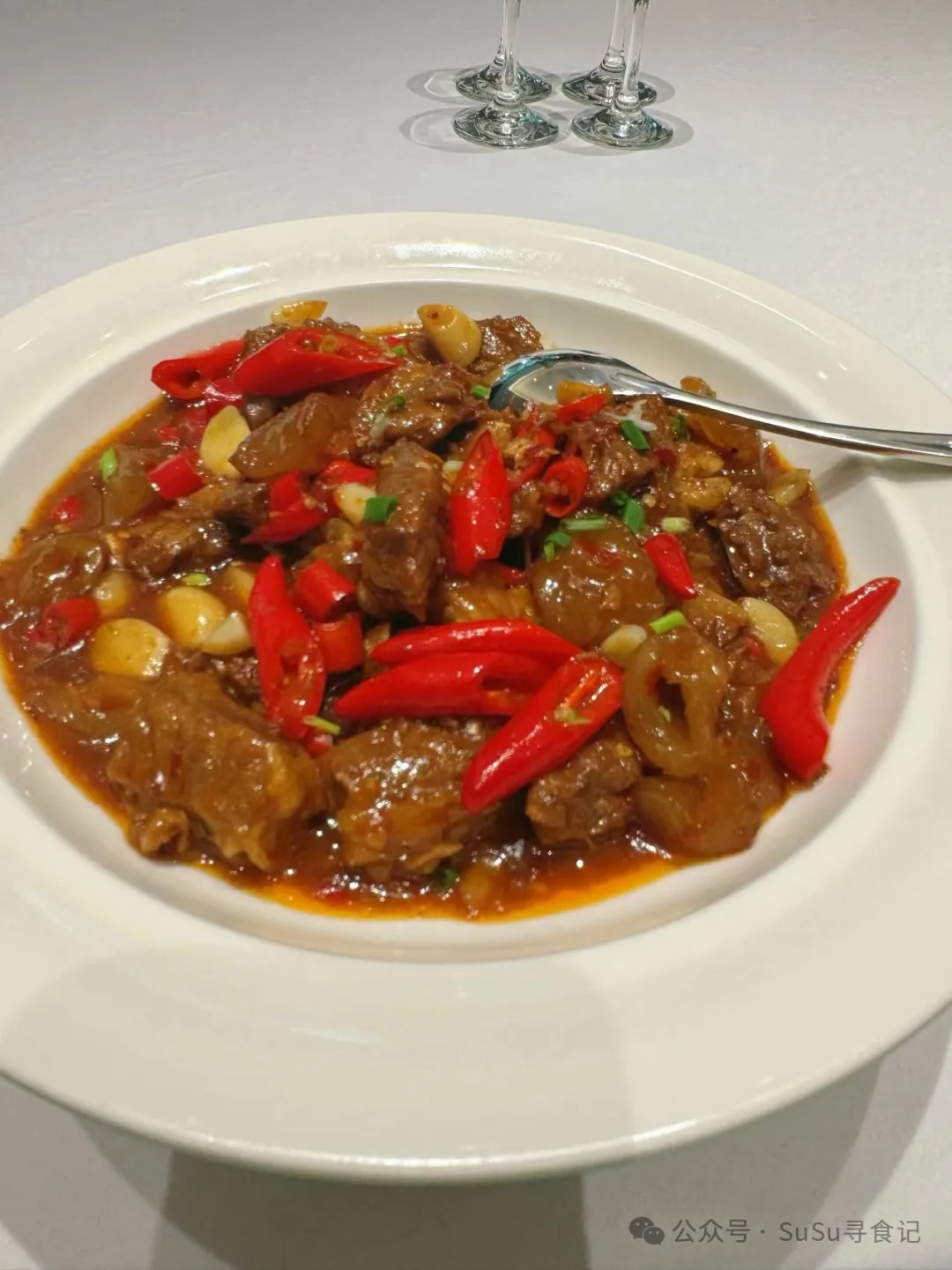 牛腩烧牛筋,不管是牛腩还是牛筋都很软烂,咸中带微辣,这道菜在全场还是比较收欢迎的。