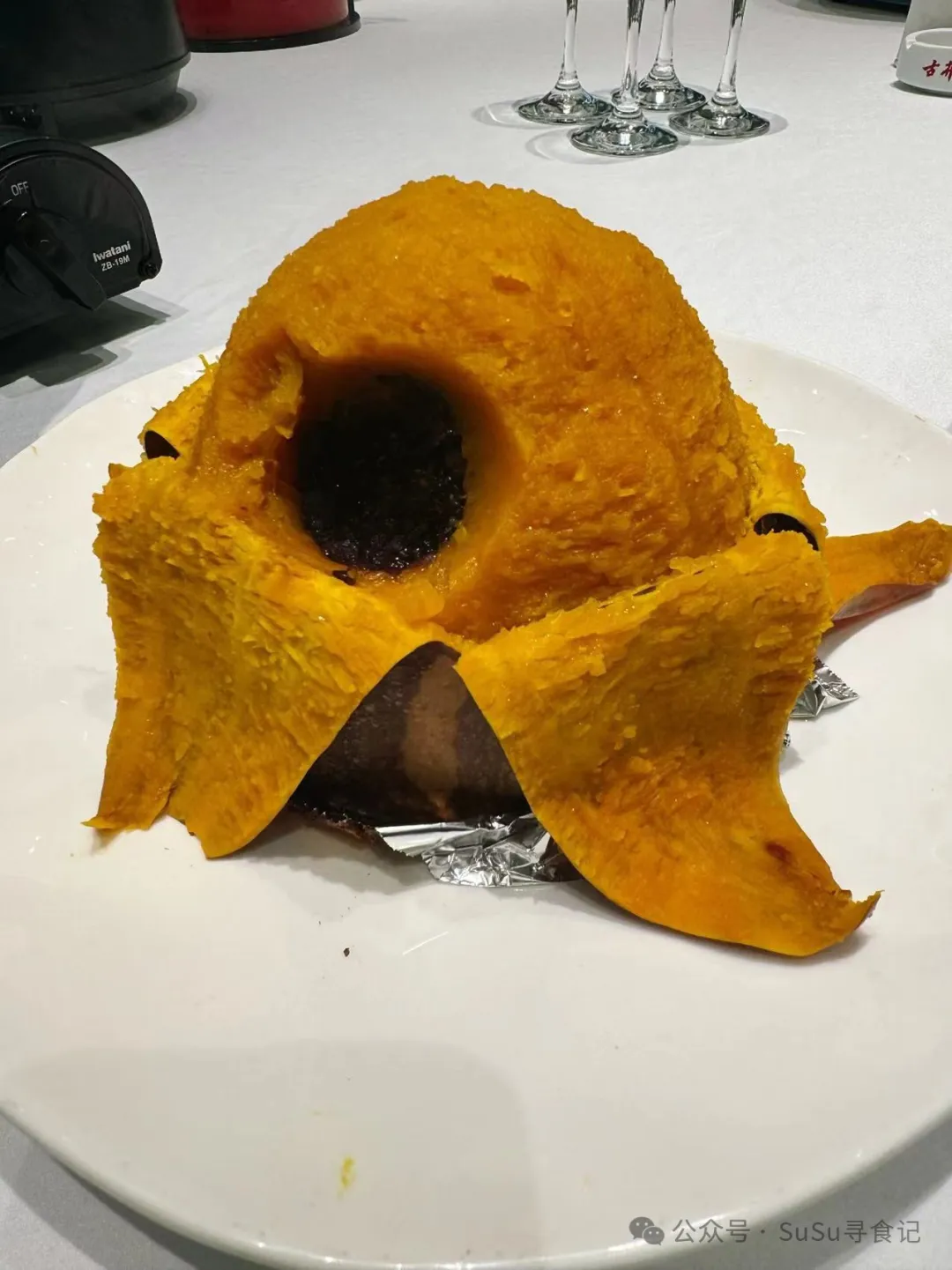 八宝烤南瓜,南瓜粘糯甜面,勺子舀开里面是八宝饭,算餐后主食了。
