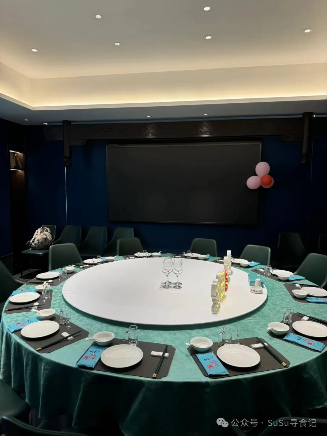 我们的包厢在一楼,一进去整体感觉非常宽敞,餐布是Tiffany蓝让人从炎热的户外进来以后自然有种清凉的感觉。