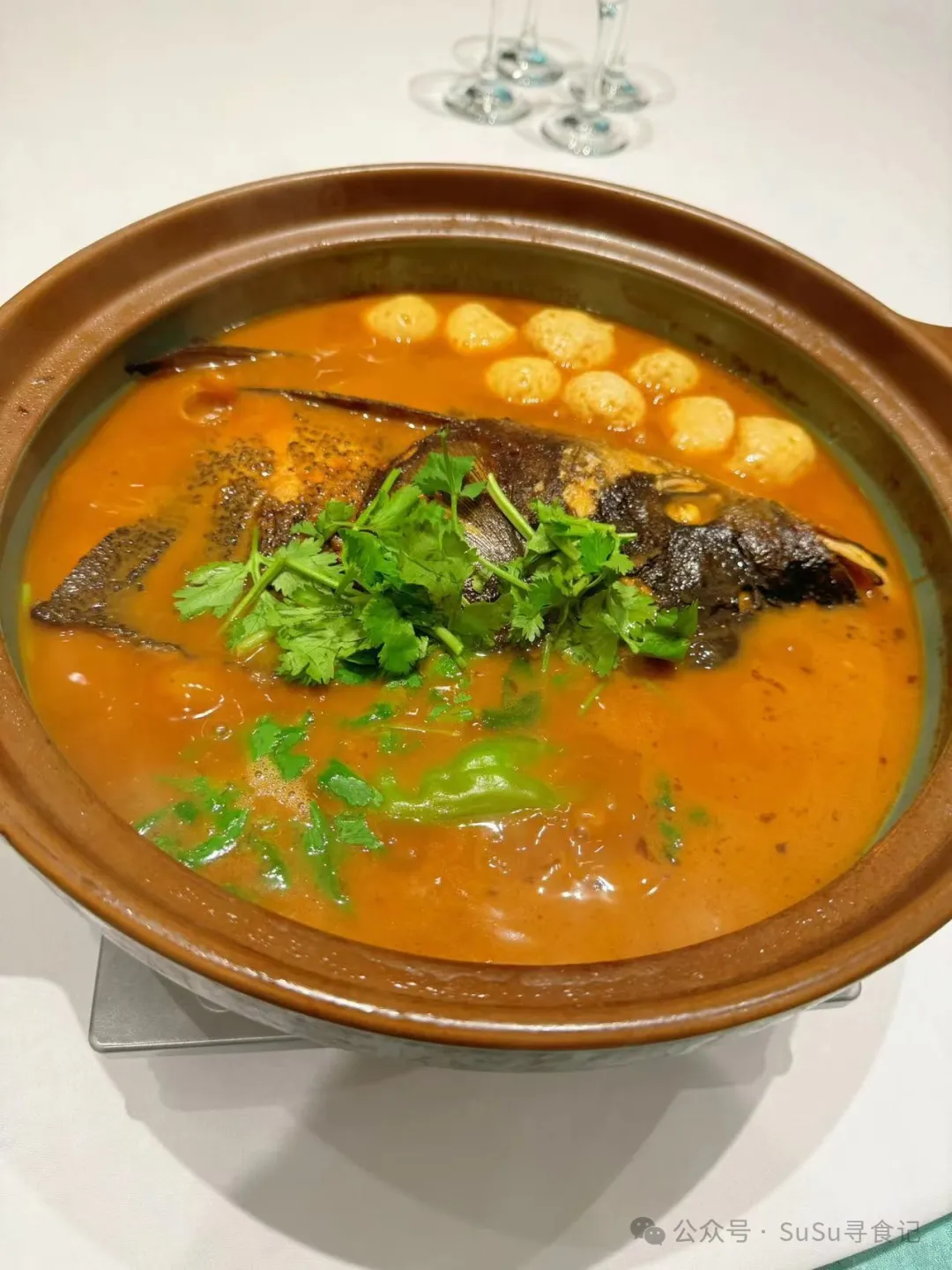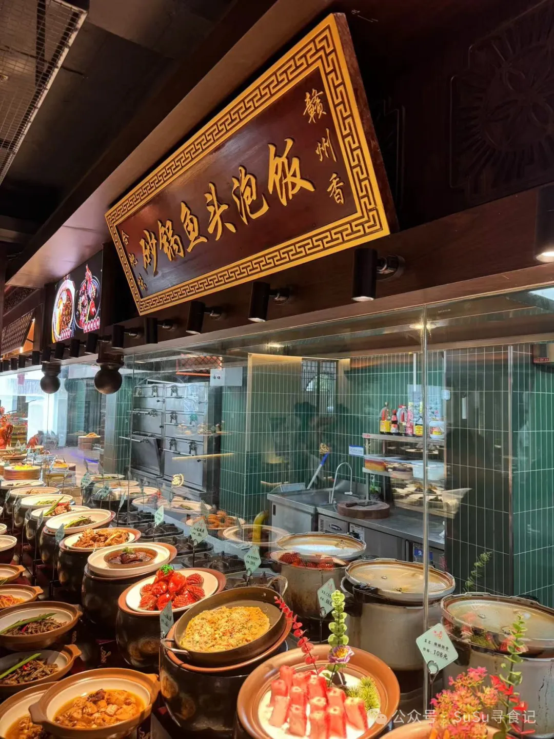 砂锅鱼头泡饭,鱼头吃差不多的时候,服务生会抱上来一个苏泊尔电饭锅,自己往碗里盛饭,然后再舀一勺汤。鱼肉鲜嫩入味,汤是咸辣口感,拌饭正好。