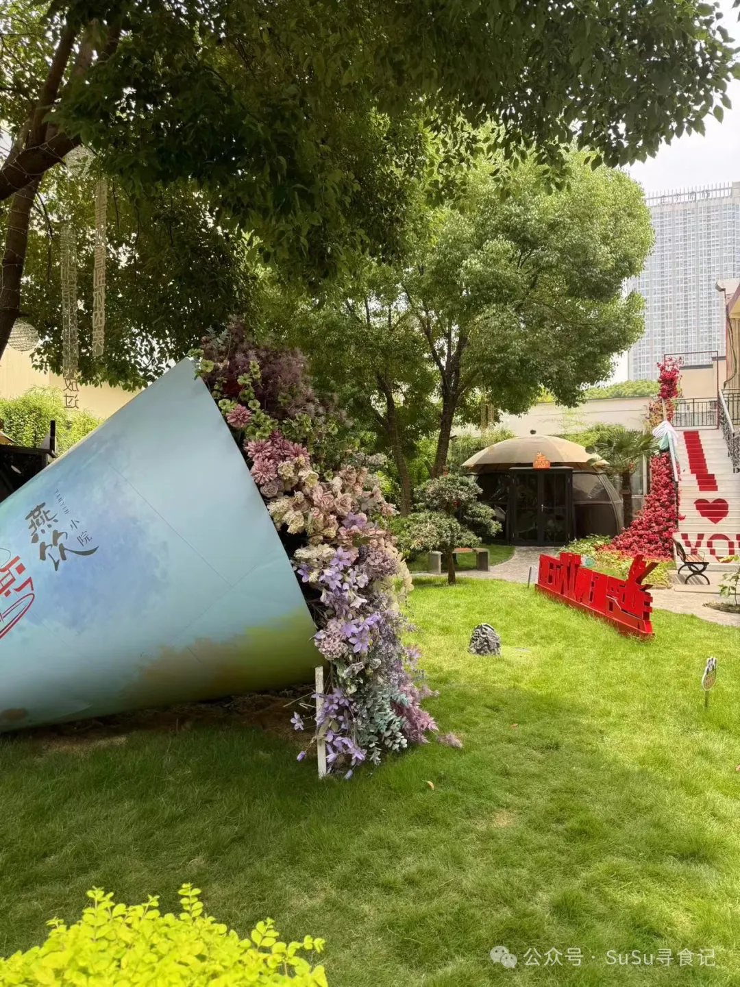 室外的花园区有一个一个形似蒙古包的花园包厢,感觉氛围感应该也不错。