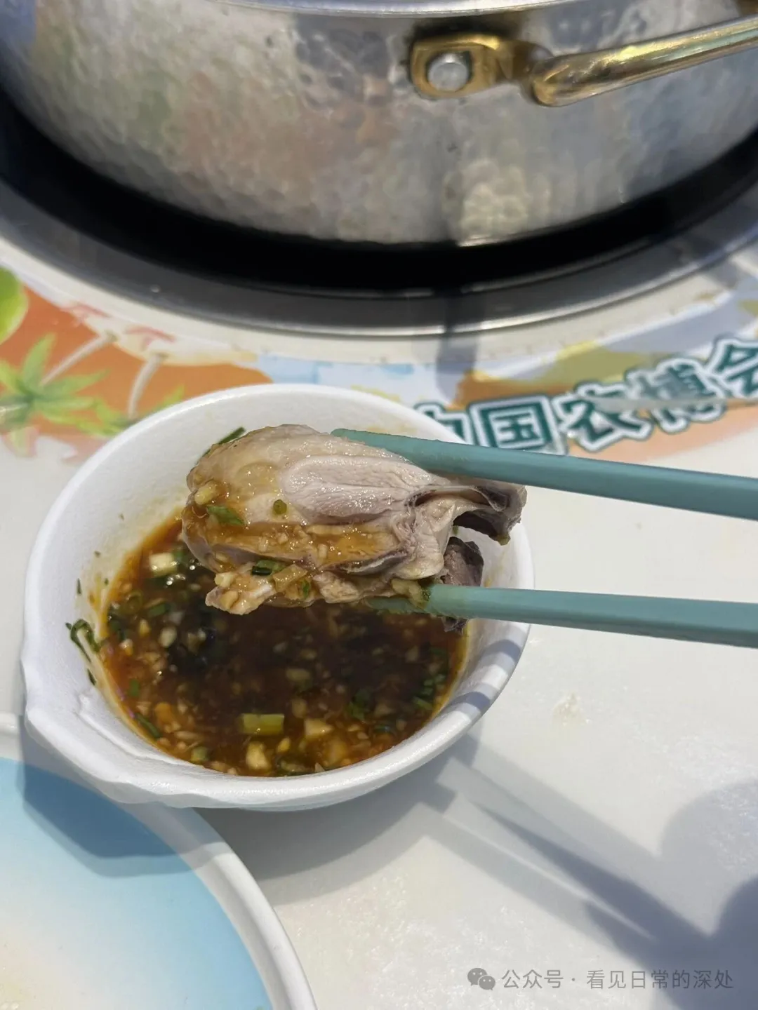 比如大名鼎鼎的“文昌鸡”。名不虚传的“鸡中爱马仕”。肉质软嫩,轻轻一抿就化在嘴里,却又带着奇妙的Q弹。蘸上灵魂酱汁,酸辣鲜香,大儿子一顿能干掉半只!