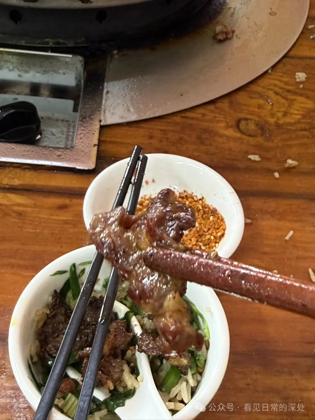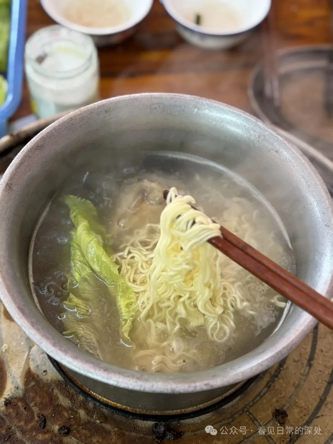 还有仙沟的“跳跳牛肉”。现杀现煮,弹牙多汁,配上一碗奶白的牛骨汤,尽是鲜活本味。