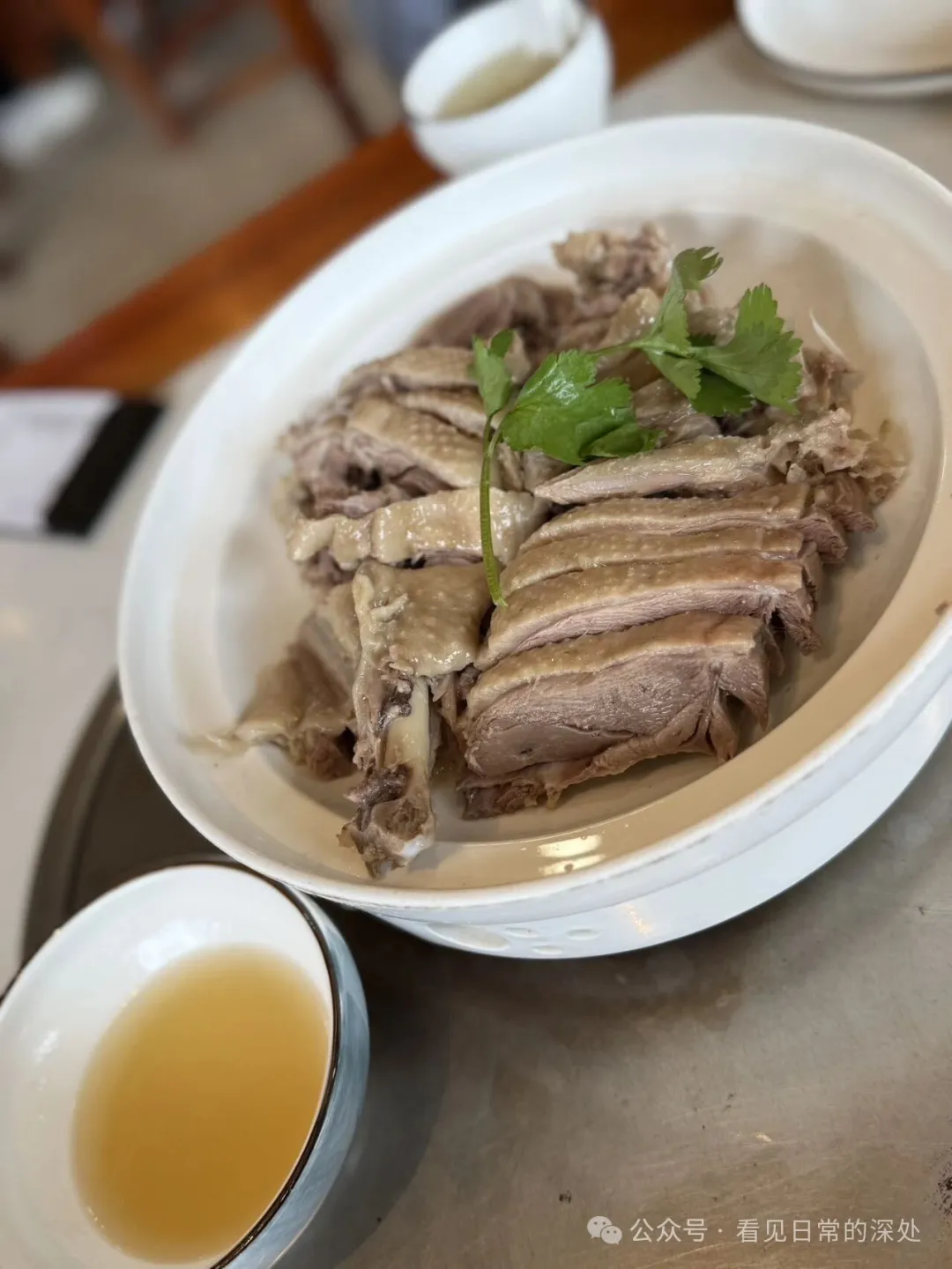 白莲鹅,是意外的惊喜。跟文昌鸡不同,它肉质紧实,啃起来超有满足感,越嚼越香。