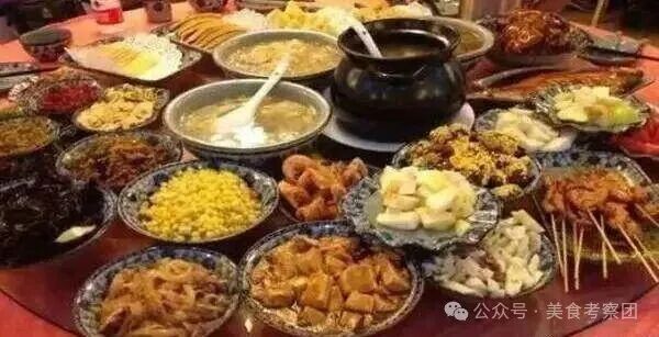 这个其实是属于满族菜,一般是由八款或者是十六款凉碟,三款大件以及十二款熘炒菜/汤烩菜组成的,看起来就是满满的一大桌。