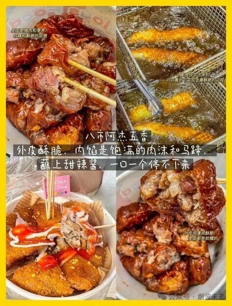 5️⃣ 八市阿杰五香:刚炸好的五香条,外脆内嫩,蘸酱更佳!