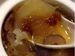 3.全部食材一起放入炖盅,蒸炖2个小时加入冰糖调味即可;也可以用砂锅来熬,大火煮滚转小火熬1个小时以上;也可以用电饭锅,摁煮粥档或者糖水甜品档即可。