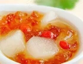 材料:桃胶、雪梨、枸杞、冰糖。