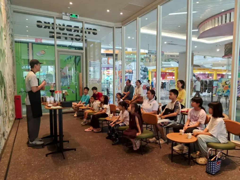 活动伊始,咖啡文化导师用生动形象、浅显易懂的语言,为孩子们开启了奇妙的咖啡之旅。从遥远国度的咖啡豆产地、不同品种咖啡豆的独特风味,到复杂精妙的烘焙工艺如何赋予咖啡豆迷人的香气;从咖啡悠久的历史传说,到现代咖啡工业的创新与发展......孩子们听得聚精会神,小脸上写满了好奇与求知欲,互动氛围十分热烈。咖啡的神秘面纱被一点点揭开,孩子们眼中闪烁着对新知识的渴望。