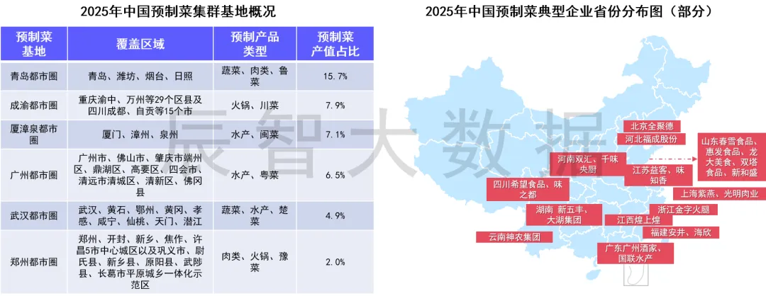 目前已经形成青岛都市圈、成渝都市圈、厦漳泉都市圈、广州都市圈、武汉都市圈、郑州都市圈六大预制菜产业基地,凭借完善的食品工业基础、丰富的农产品资源以及发达的冷链物流体系,构建了具有区域特色的产业生态,中国预制菜企业呈集群式发展。